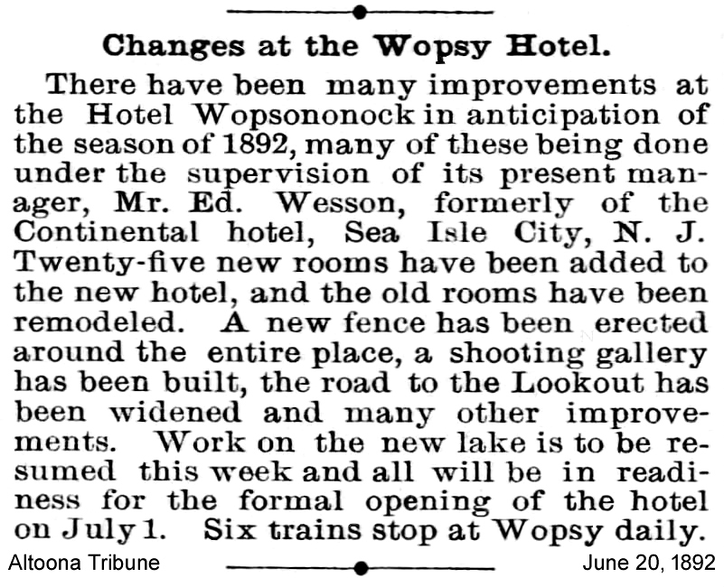 An article in the June 20th, 1892 Altoona Tribune mentions the addition and twenty-five new rooms.