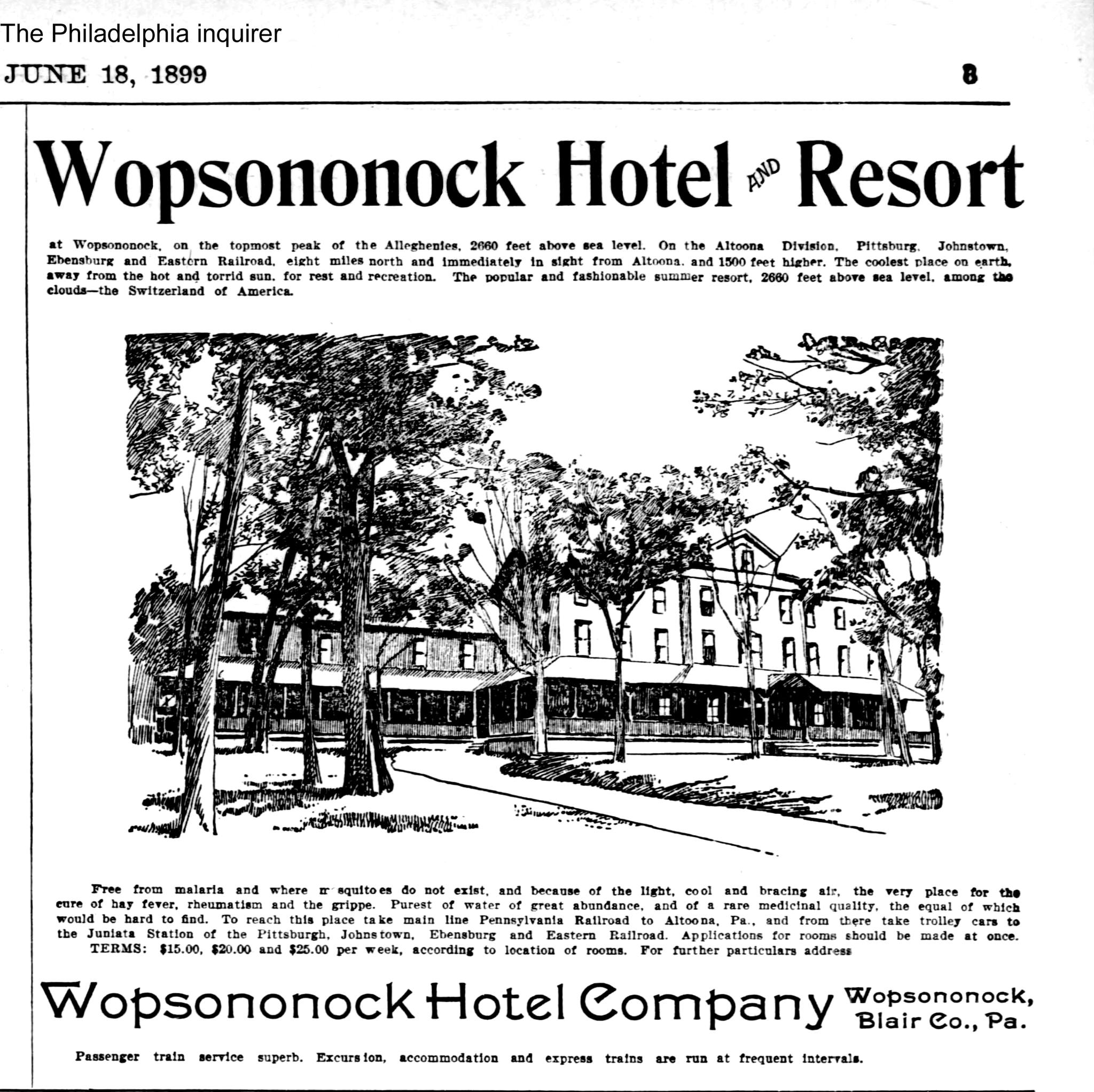 The photo could have been used as a reference for an advertisement in The Philadelphia Inquirer from June 18, 1899 inviting visitors to the hotel.