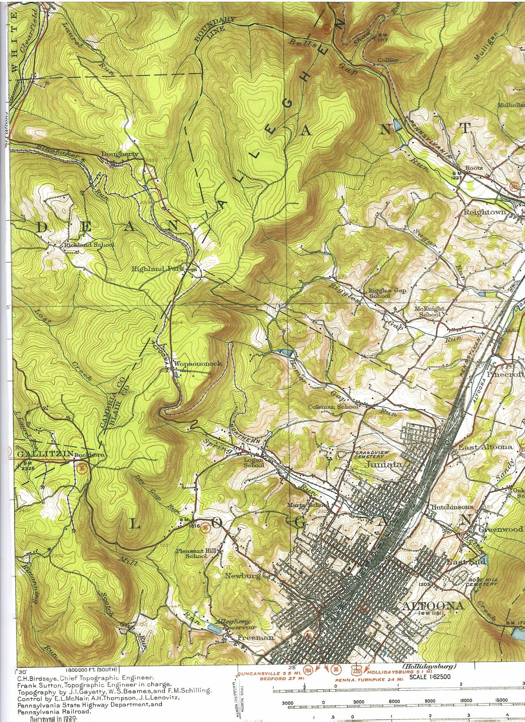 And this 1920 topo map of the area shows the path of the railroad out of Altoona and up the mountain.