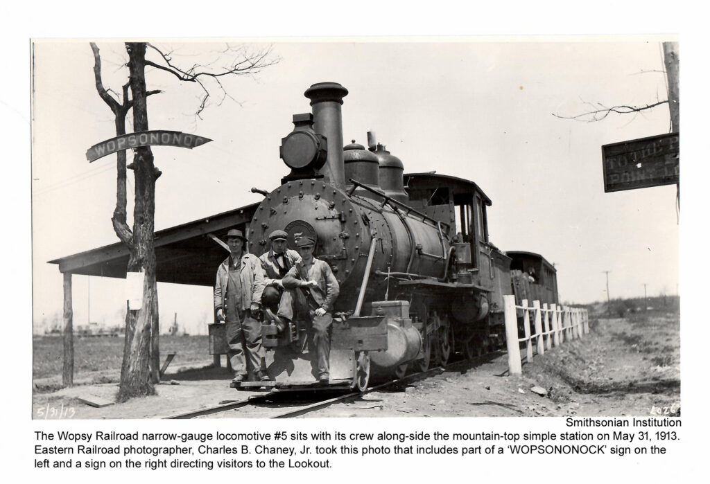 Although I never met Jim Shafer in person, I spoke with him by phone several times. In either 1980 or 1981, Jim left me a copy of a railroad history booklet titled The Alley Popper, written by Richard D. Adams and published in 1980. Mr. Adams was both a railroad historian and an ordained Presbyterian minister. His booklet contained numerous facts about the Wopsononock Railroad, along with photographs I had never seen before—several of which came from the Smithsonian Institution’s extensive railroad collections.